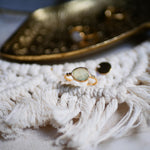 Bague en laiton doré or 2 microns 18 carats réglable de la taille 54 à 62, ornée de zircons et d'une pierre au choix : Pierre de Lune arc-en-ciel (aussi appelée Labradorite blanche ou Peristérite), Labradorite ou Prehnite