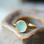 Bague en laiton doré ou 2 microns 18 carats réglable , ornée d'une pierre au choix : Calcédoine, Rutile noir, Pierre de Lune
