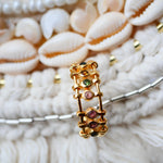 Bague réglable de la taille 54 à 58 en laiton dorée 2 microns, ornée de tourmalines multicolores (dimensions tourmalines environ 1mm)