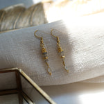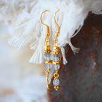 Boucles d'oreilles en acier inoxydable composées de labradorites et de pierres de lune.