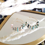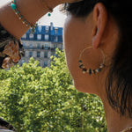 - Créoles 30mm, composées d'agates mousse et de pierres de bohême
