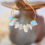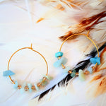 Créoles mesurant 30mm, composées d'amazonites et de perles de bohême