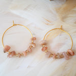 Créoles mesurant 30mm, composées de pierres de Soleil et de perles de bohême