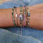 Bracelet composé de tourmalines ou d'agates indiennes (au choix) et d'hématites