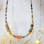Collier en acier inoxydable, composé d'agates indiennes, labradorites, quartz cherry et de breloques dorées or fin