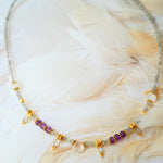 Ce collier unique est fabriqué à partir de pierres naturelles de labradorite, de pierre de lune et de quartz rose. Les pierres de labradorite, connues pour leur éclat chatoyant, sont associées à la transformation personnelle et à la protection énergétique. Les pierres de lune, avec leur lueur douce et mystique, sont associées à l'intuition et à la guérison émotionnelle. Enfin, les pierres de quartz rose, qui ont une teinte rose douce et délicate, sont associées à l'amour, à la tendresse et à l'apaisement.