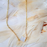 Le collier Bhagya d'une élégance épurée, incarne la délicatesse et la simplicité. Son trèfle en nacre, fin et minimaliste, évoque la chance et la positivité à chaque instant. C'est une célébration de la beauté minimaliste et de l'élégance qui réside dans la simplicité.