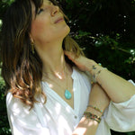 Nos bijoux sont conçus avec des pierres naturelles, offertes par la Terre Mère elle-même. Chaque pierre présente ainsi des variations uniques de couleurs, faisant de chacune d’elle une création singulière. Veuillez noter que les teintes des pierres peuvent légèrement différer de l'image. Nous croyons que ces variations confèrent à votre bijou un caractère unique et personnel, juste pour vous.
