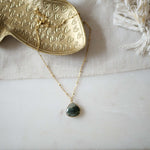 Collier en acier inoxydable, composé d'une pierre Agate mousse (actuellement, forme goutte)