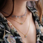 Collier en acier inoxydable composé d'une labradorite et de breloques dorées or fin.