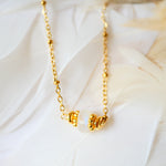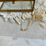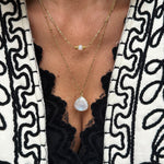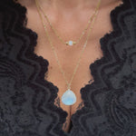 Collier en acier inoxydable composé d'une pierre de lune et de breloques dorées or fin.