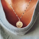 Collier en acier inoxydable, résine noire, orné d'un pendentif doré or fin.