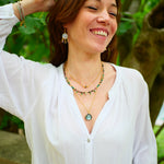 Nos bijoux sont conçus avec des pierres naturelles, offertes par la Terre Mère elle-même. Chaque pierre présente ainsi des variations uniques de couleurs, faisant de chacune d’elle une création singulière. Veuillez noter que les teintes des pierres peuvent légèrement différer de l'image. Nous croyons que ces variations confèrent à votre bijou un caractère unique et personnel, juste pour vous.