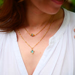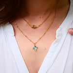 - Collier Prayan en acier inoxydable composé d’une breloque dorée à l’or fin avec pierre Apatite (40+5cm de rallonge)