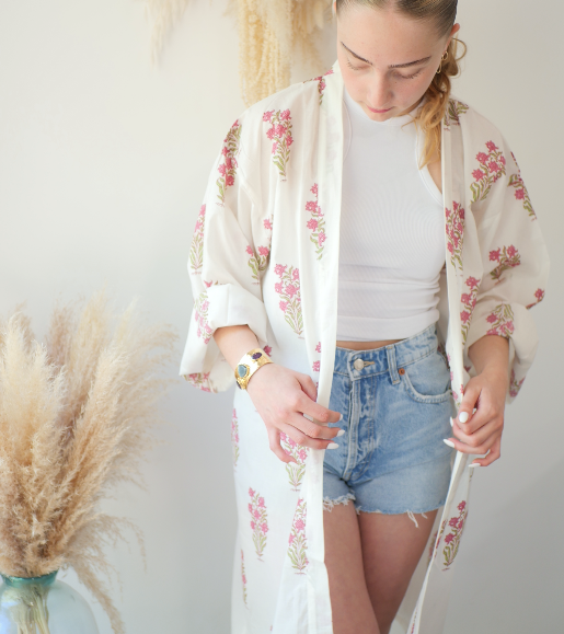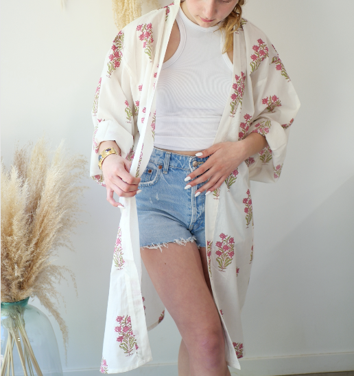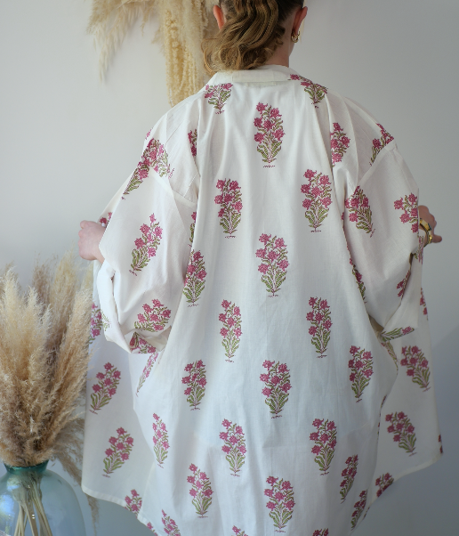 Kimono, 100% coton imprimé à la main en Inde avec la technique du block print