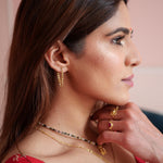 La dualité s'exprime avec élégance à travers le design des boucles Dvaita. La double chaîne crée une esthétique harmonieuse, évoquant la beauté qui naît de l'union de deux éléments distincts. Des boucles intemporelles qui se portent à toutes les occasions.