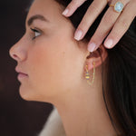 Ces boucles d'oreilles capturent la beauté des pierres, créant un bijou raffiné qui attire les regards et évoque la magie de la nature. Leur particularité réside dans leur double piercing, permettant aux pierres de danser gracieusement à chaque mouvement de votre tête, créant une esthétique encore plus envoûtante.
