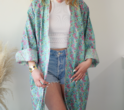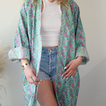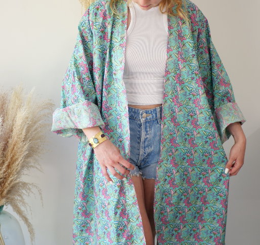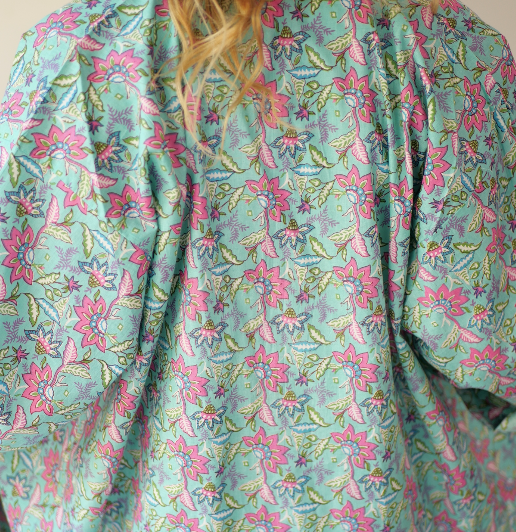 Kimono, 100% coton imprimé à la main en Inde avec la technique du block print
