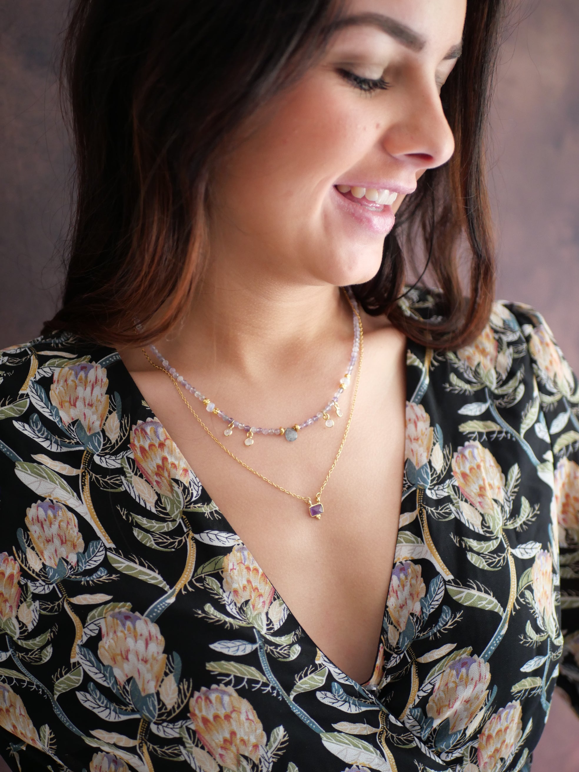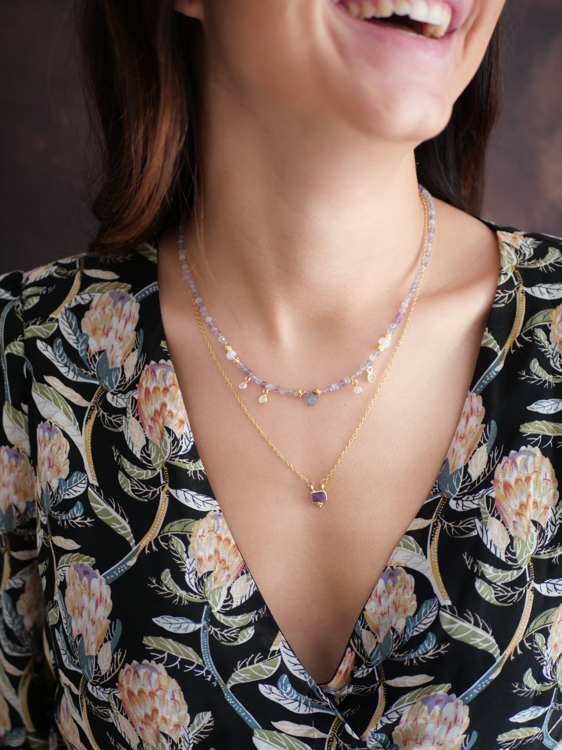 Magnifique composition de bijoux pour les fans de colliers en améthyste, comprenant deux colliers de la collection Puissantes :