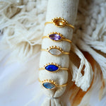 Bague en laiton doré or 2 microns 18 carats réglable de la taille 54 à 60, ornée d'une labradorite, d'une pierre de lune, d'une citrine, d'une amethyste ou d'une lapis lazuli