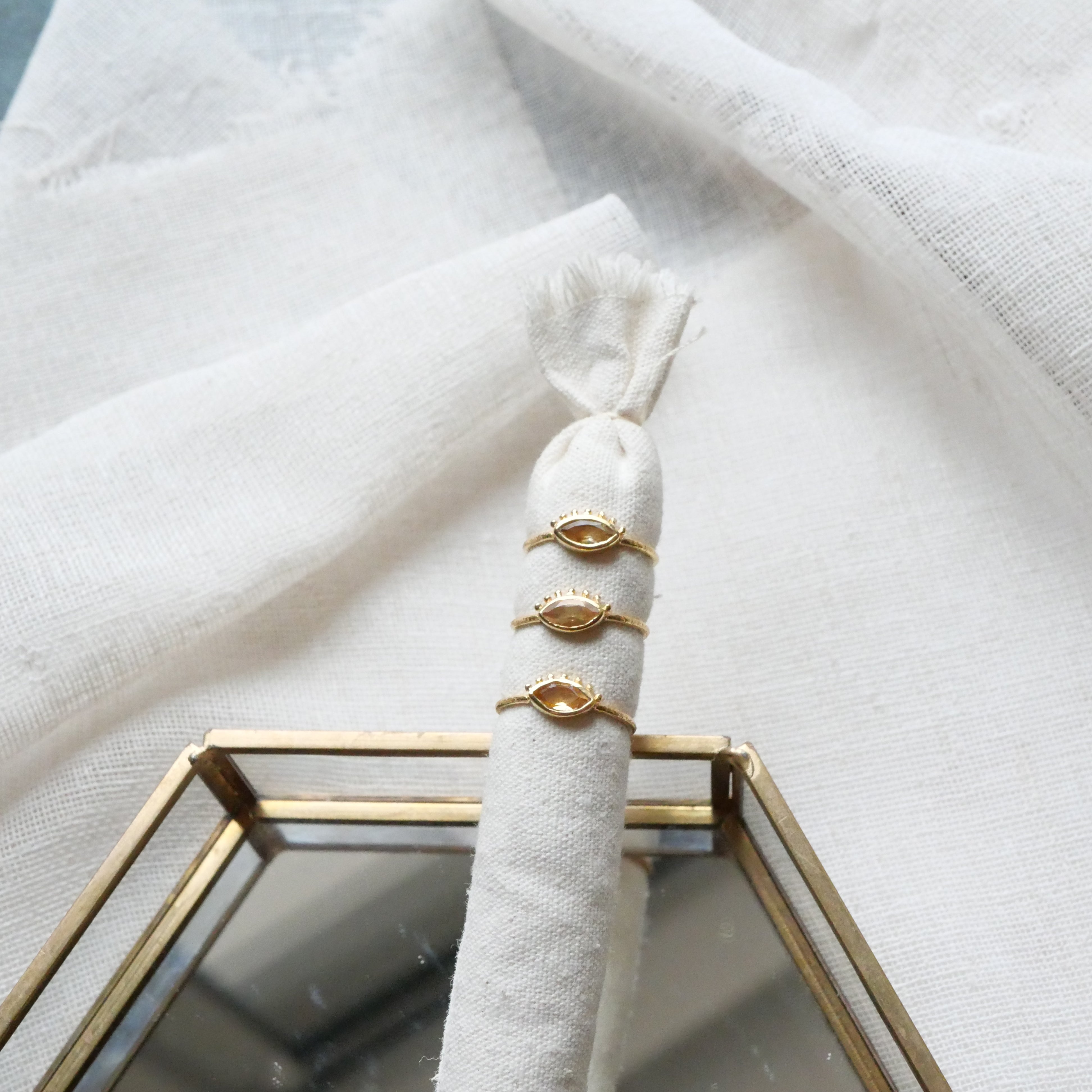 La forme de l'oeil marque un symbole de protection et de bienveillance dans de nombreuses cultures. Iris est composée de pierres fines de haute qualité soigneusement sélectionnées pour révéler toute la beauté de cette bague.