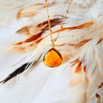 Ce collier est composé de citrine, une pierre qui attire l'abondance et la joie. Elle stimule la créativité et apporte une énergie positive.