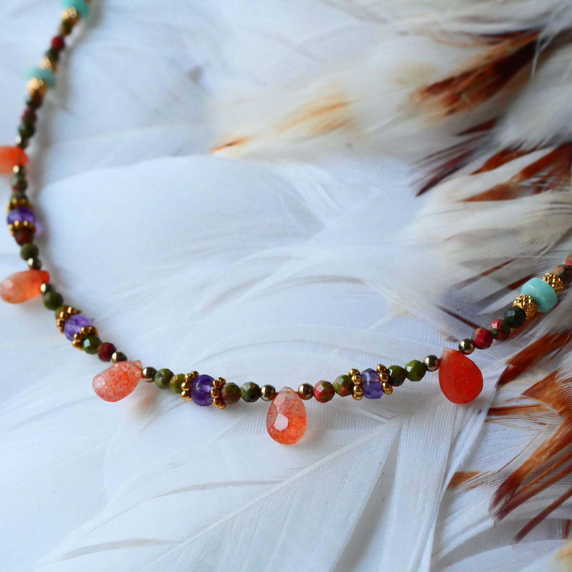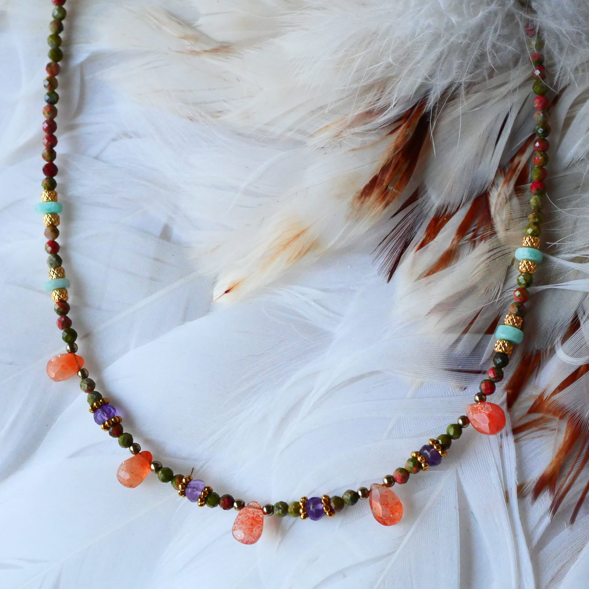 Collier Ananda Mala - Amazonite Pierre de Soleil Améthyste Unakite
