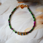 Bracelet composé de labradorites, breloques den acier inoxydable et de rubis zoisites
