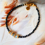 Kamala est composé de pierres fines naturelles, qui ont été sélectionnées avec soin pour leur beauté et leurs propriétés curatives. Les labradorites ajoutent une touche de magie à l'esthétique bohème du bracelet, avec leurs reflets chatoyants qui rappellent les aurores boréales.