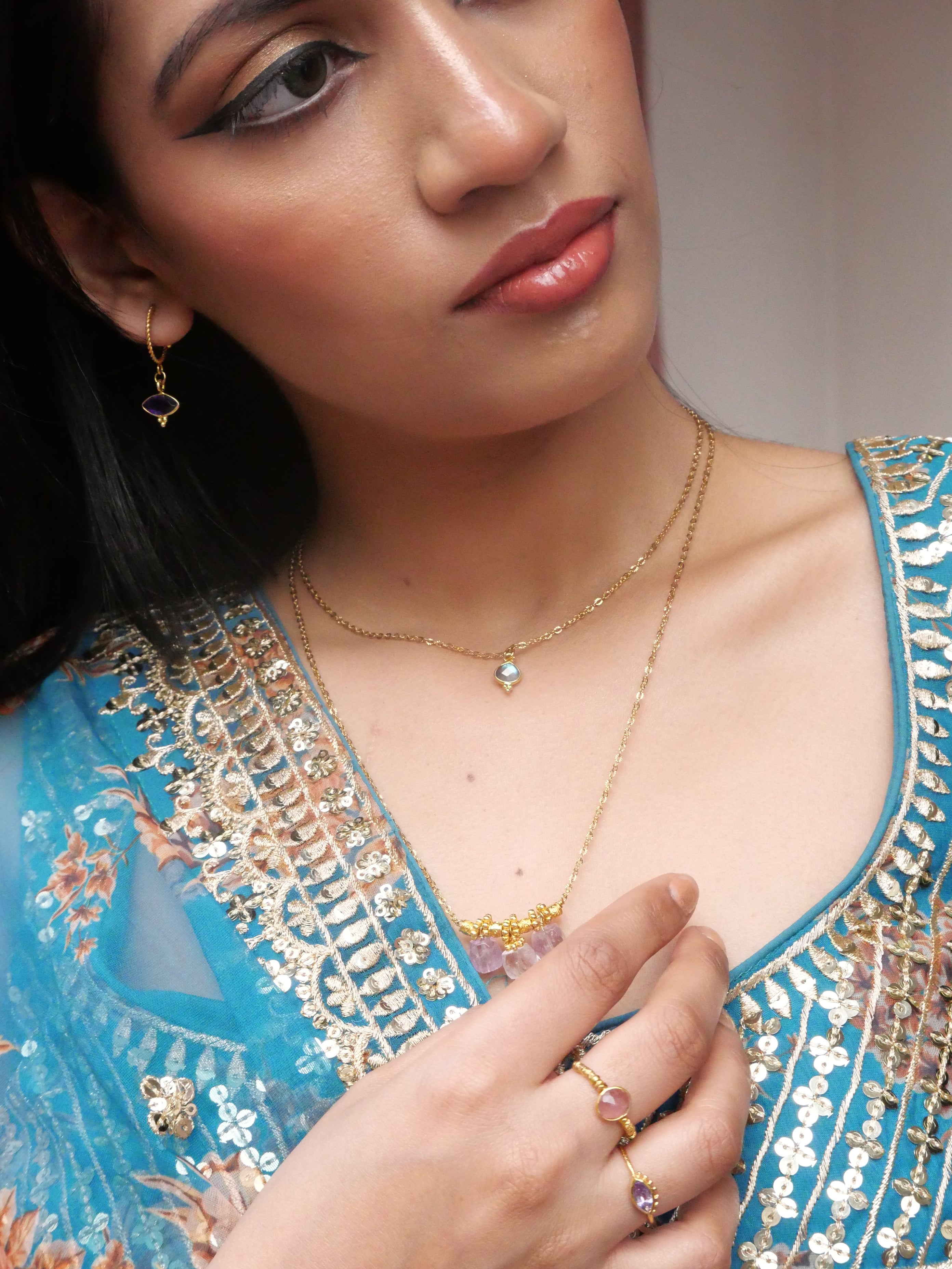 Nos bijoux sont conçus avec des pierres naturelles, offertes par la Terre Mère elle-même. Chaque pierre présente ainsi des variations uniques de couleurs, faisant de chacune d’elle une création singulière. Veuillez noter que les teintes des pierres peuvent légèrement différer de l'image. Nous croyons que ces variations confèrent à votre bijou un caractère unique et personnel, juste pour vous.