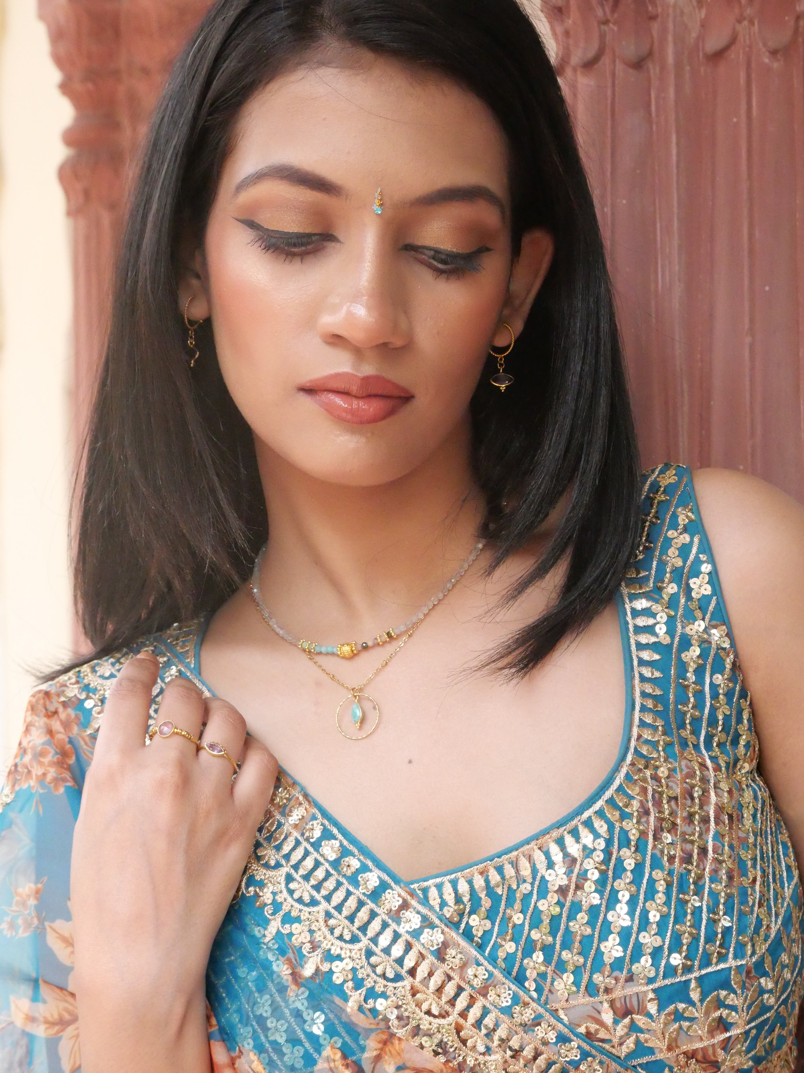 Nos bijoux sont conçus avec des pierres naturelles, offertes par la Terre Mère elle-même. Chaque pierre présente ainsi des variations uniques de couleurs, faisant de chacune d’elle une création singulière. Veuillez noter que les teintes des pierres peuvent légèrement différer de l'image. Nous croyons que ces variations confèrent à votre bijou un caractère unique et personnel, juste pour vous.