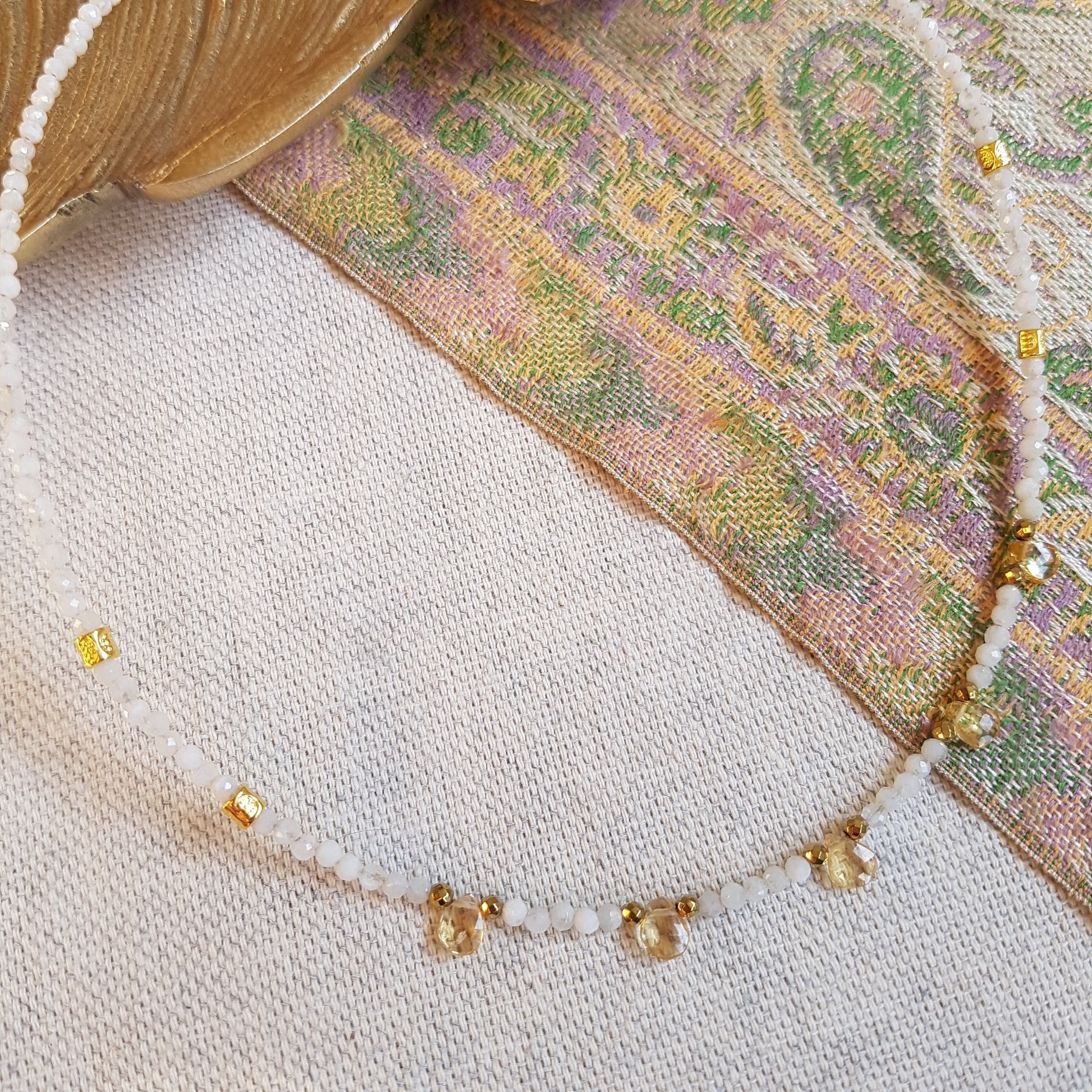 Collier en acier inoxydable, composé de pierres de lune, de citrines et de breloques dorées or fin