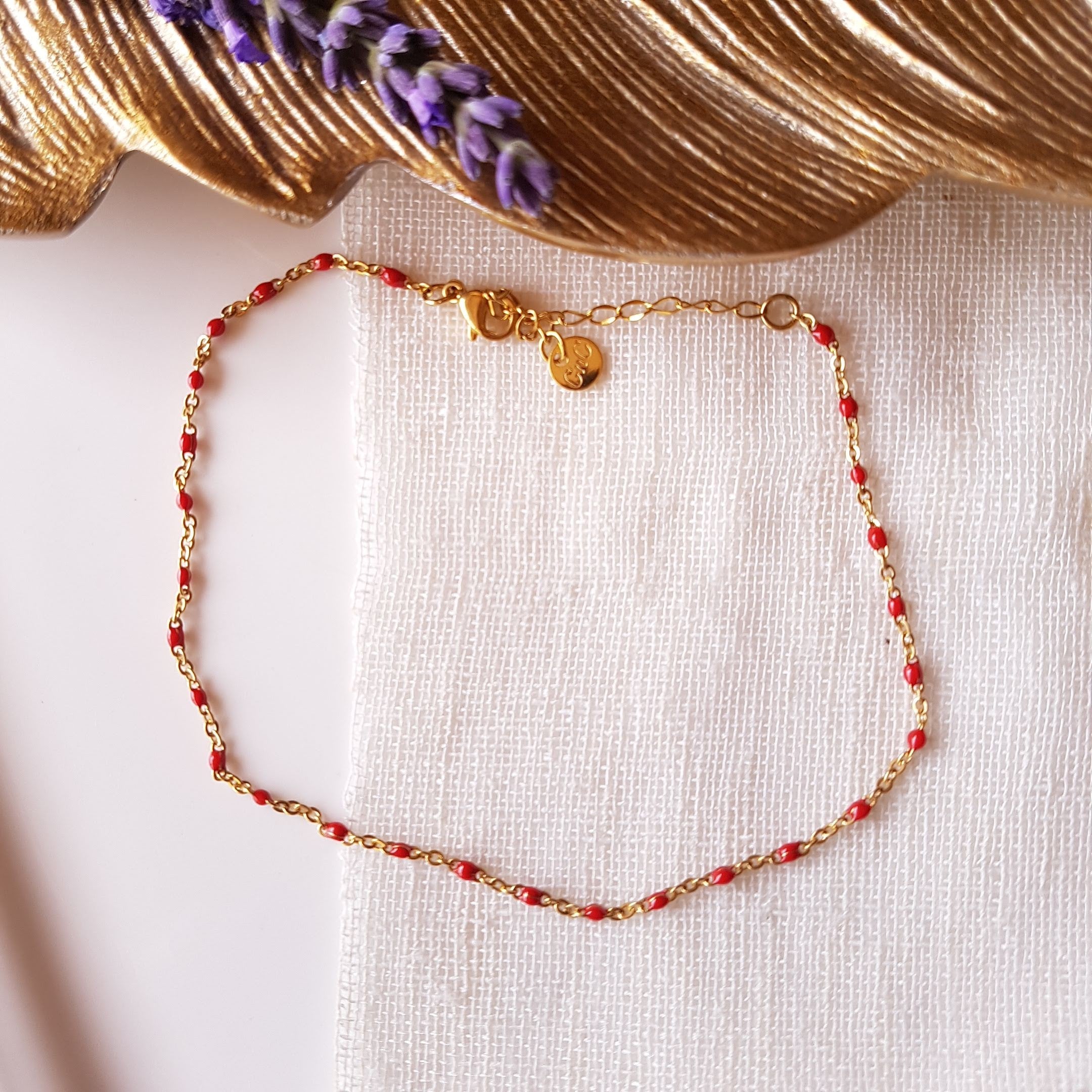 Chaîne de cheville en acier inoxydable et résine de couleur
