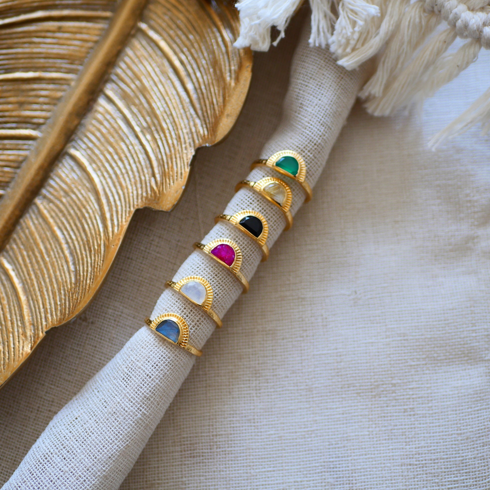 Laissez briller votre lumière personnelle avec la bague Oditi. Cette bague évoque la bienveillance du soleil qui se retire à l'horizon. Chaque pierre sélectionnée crée un éclat unique, transformant la bague en un tableau vivant des teintes enchanteresses du crépuscule. Une pièce qui célèbre l'éclat du soleil dans vos mains, évoquant la beauté inoubliable des moments chaleureux du quotidien.