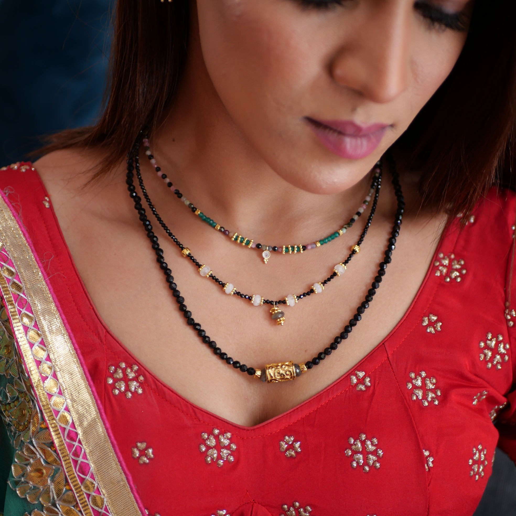 Les éclats scintillants du collier Dipti symbolisent la lumière qui perce l'obscurité, offrant une vision optimiste même dans les moments les plus sombres. Chaque pierre est une promesse de renouveau, une invitation à embrasser la beauté qui émane de l'éclat intérieur et de la perspective positive. Portez ce collier comme une déclaration de foi en un avenir lumineux. Que chaque reflet scintillant vous rappelle que, même dans les périodes difficiles, l'éclat et l'espoir persistent. Un bijou qui célèbre la force de la lumière et la promesse d'un demain plein d'espoir.