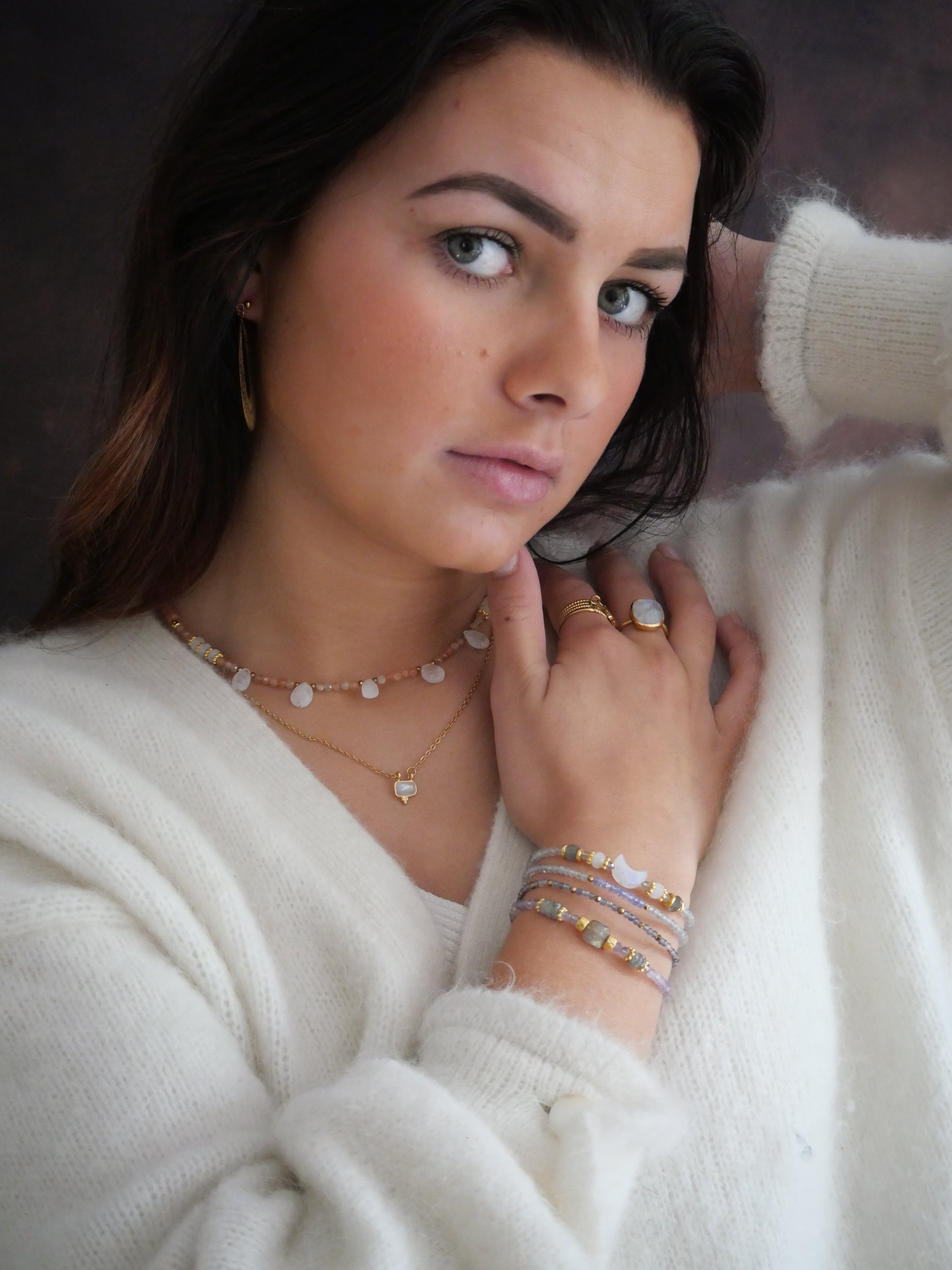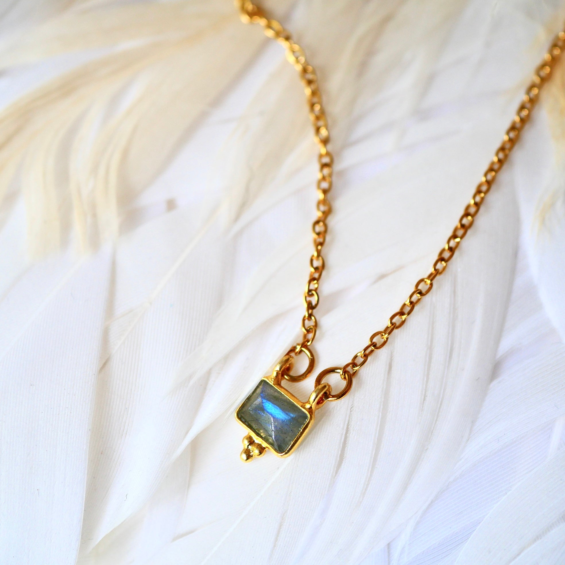 Associé aux pierres naturelles telles que la Pierre de Lune, la Labradorite et l'Améthyste, ce collier vous apportera épanouissement personnel et éveillera votre éclat intérieur.