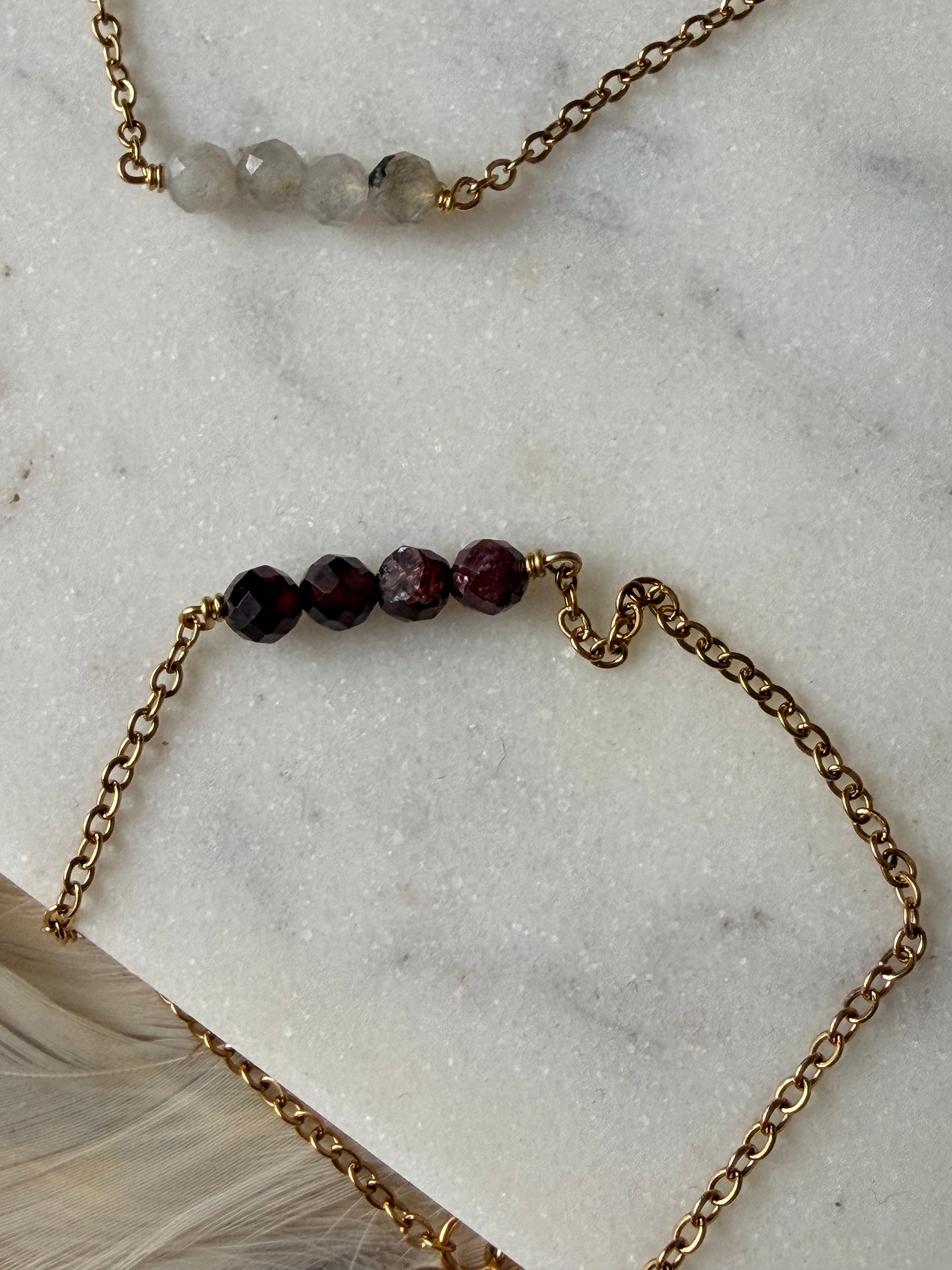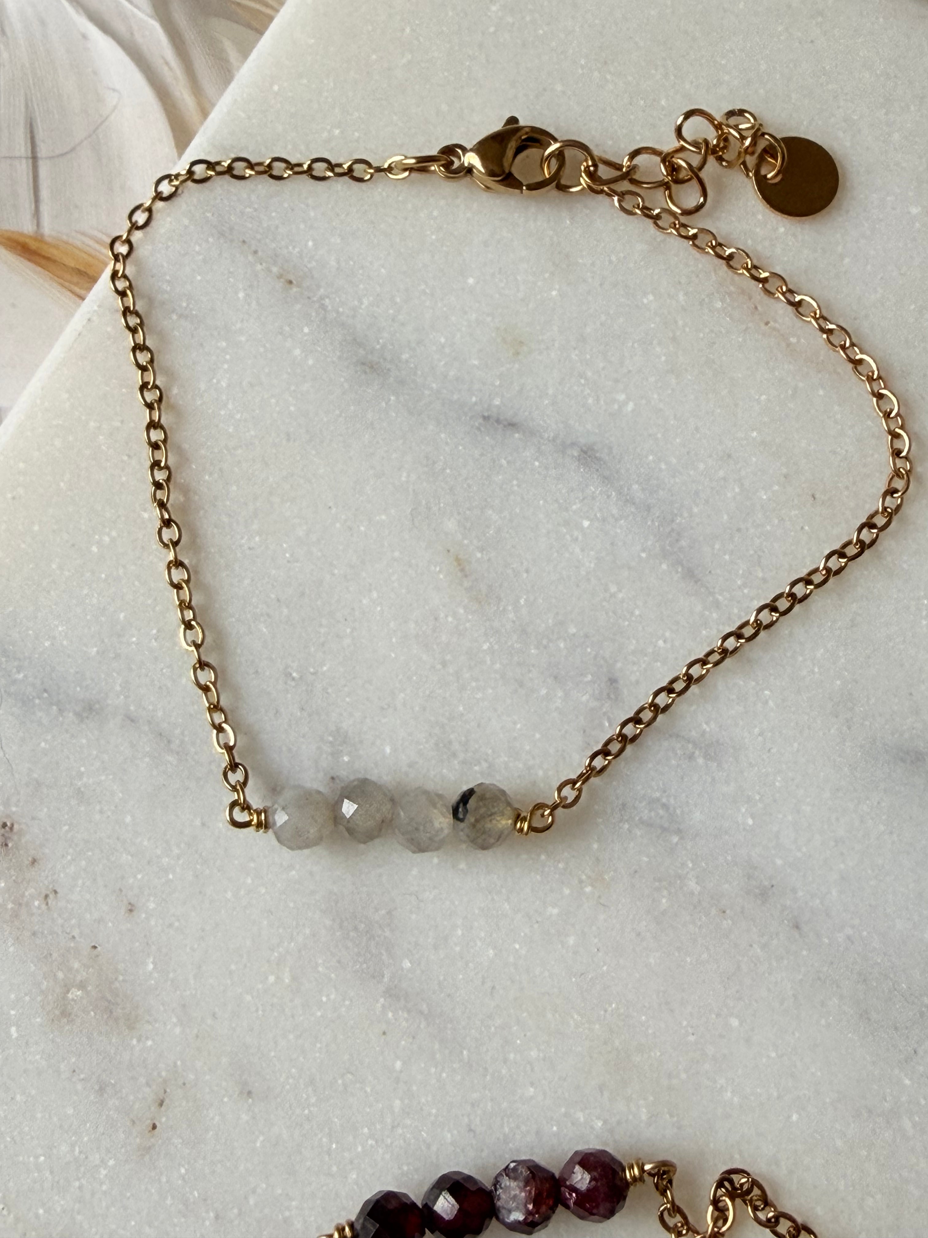 Bracelet Camille en acier inoxydable, composé de grenats ou de labradorites