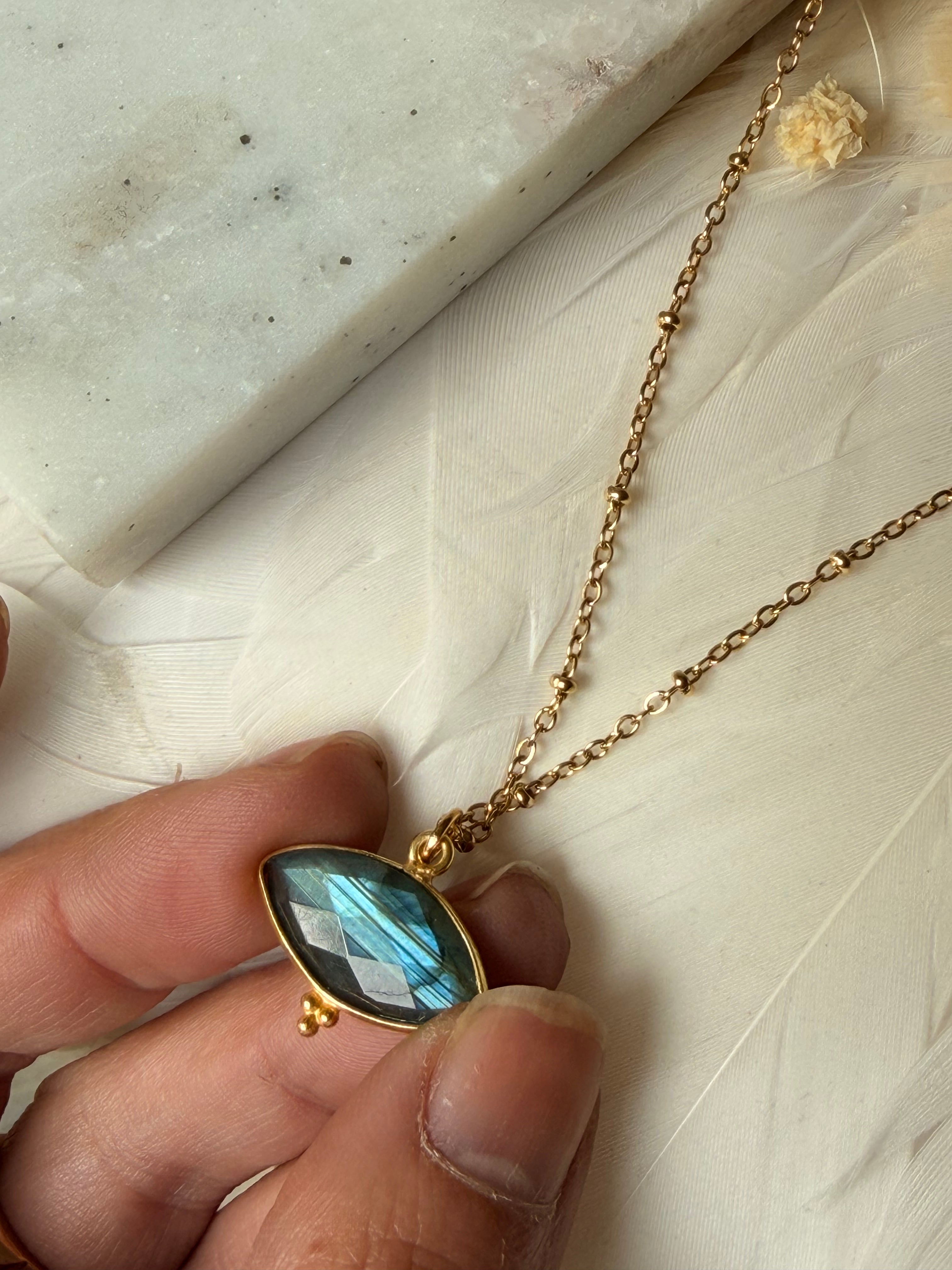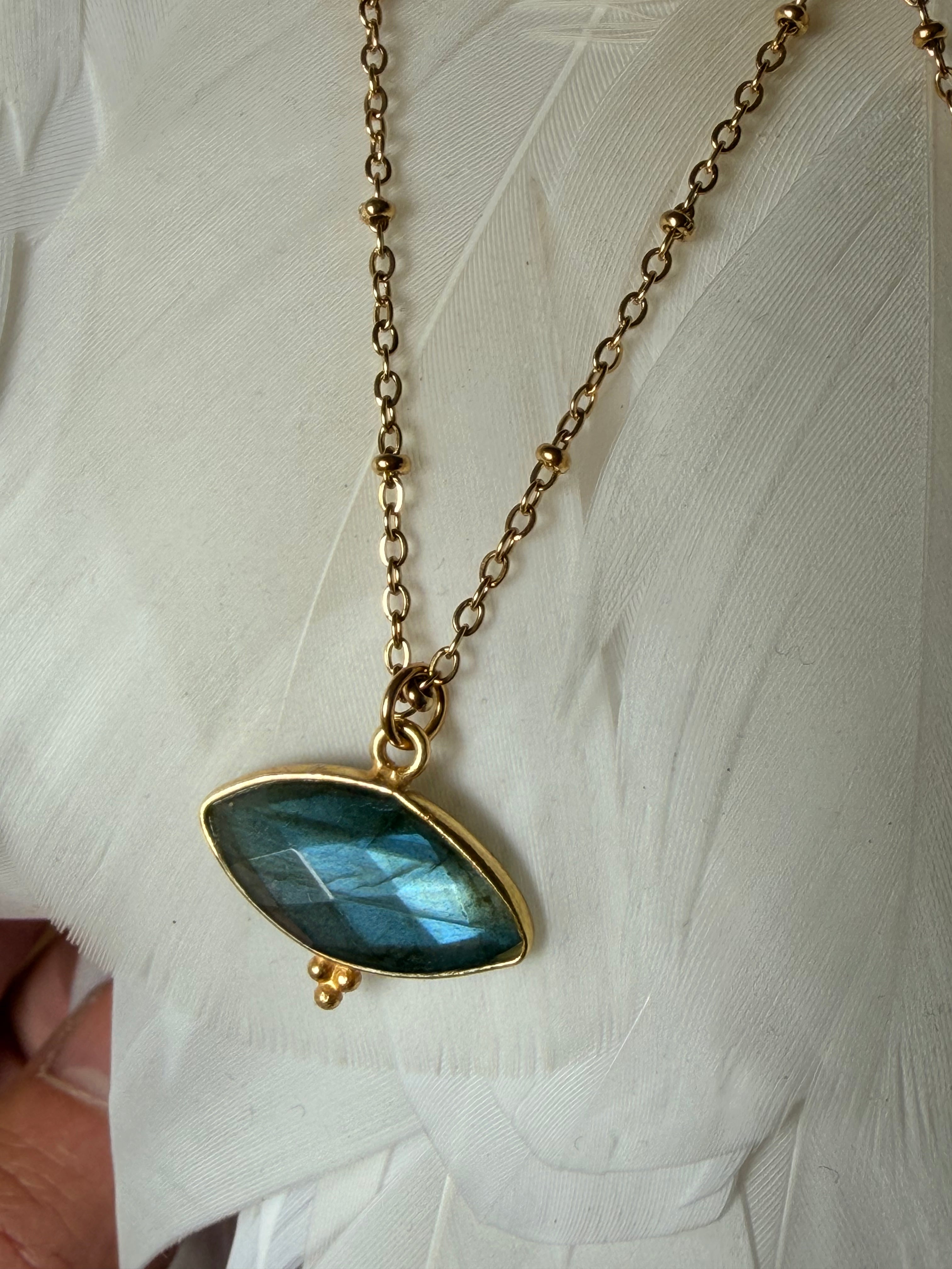 Collier Mahakali Labradorite ou Pierre de lune arc-en-ciel - Braderie Parfaites