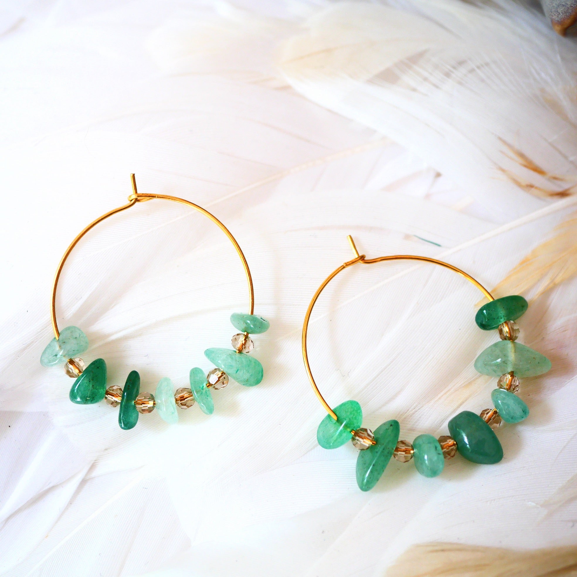 - 30-mm-Creolen, bestehend aus Aventurin und böhmischen Steinen