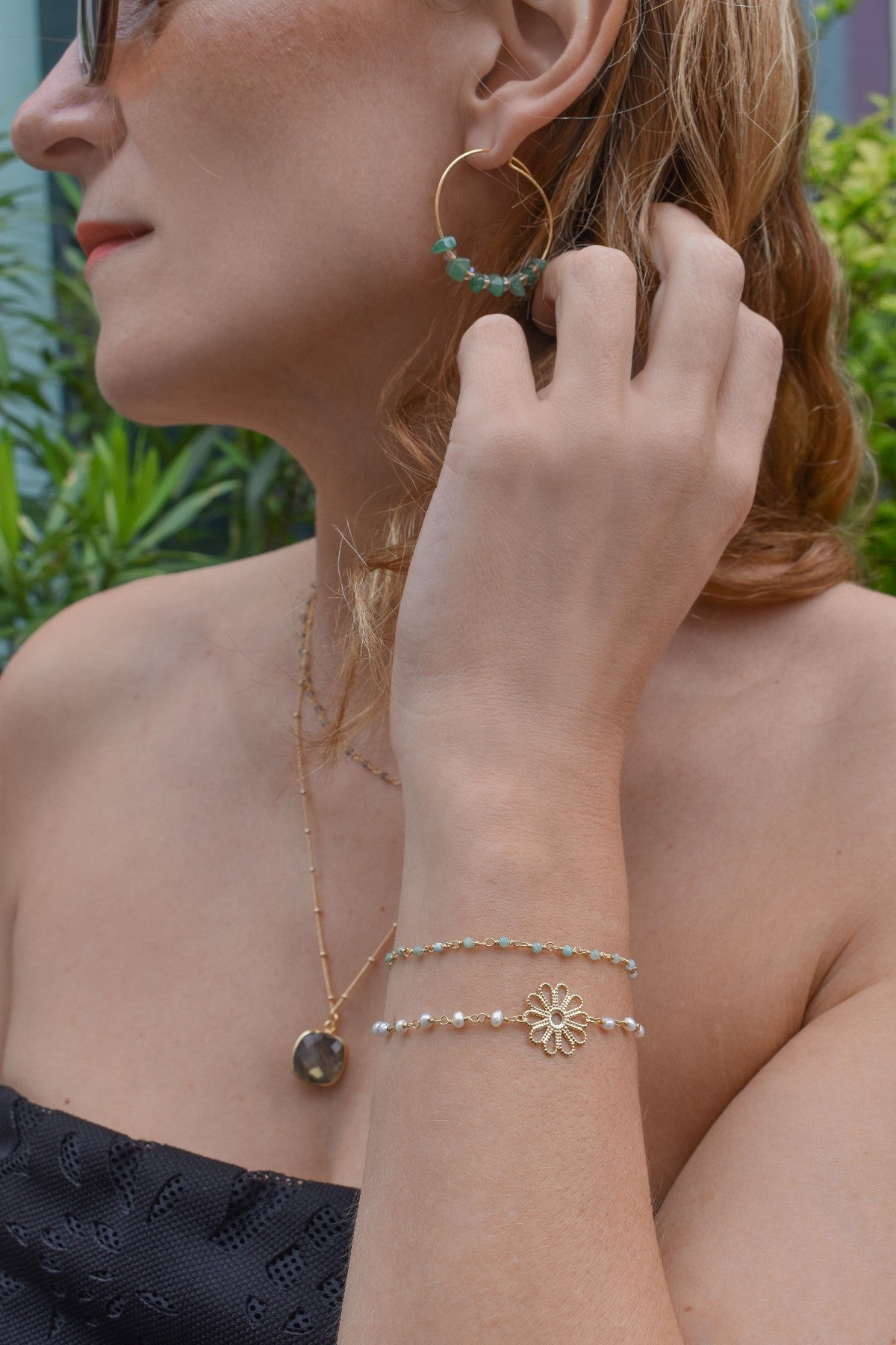 Unser Schmuck besteht aus Natursteinen, die von Mutter Erde selbst angeboten werden. Jeder Stein weist somit einzigartige Farbvariationen auf, die ihn zu einer einzigartigen Kreation machen. Bitte beachten Sie, dass die Farbtöne der Steine geringfügig vom Bild abweichen können. Wir glauben, dass diese Variationen Ihrem Schmuck einen einzigartigen und persönlichen Charakter verleihen, nur für Sie.