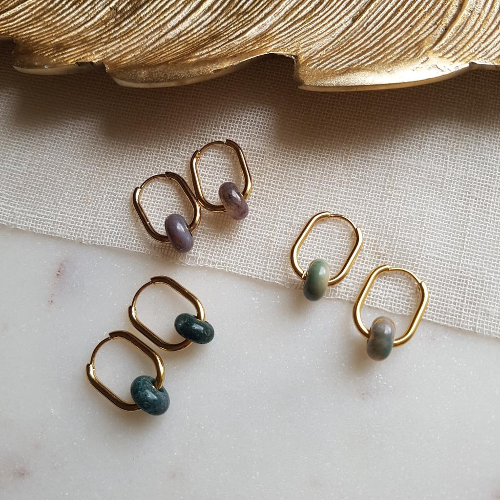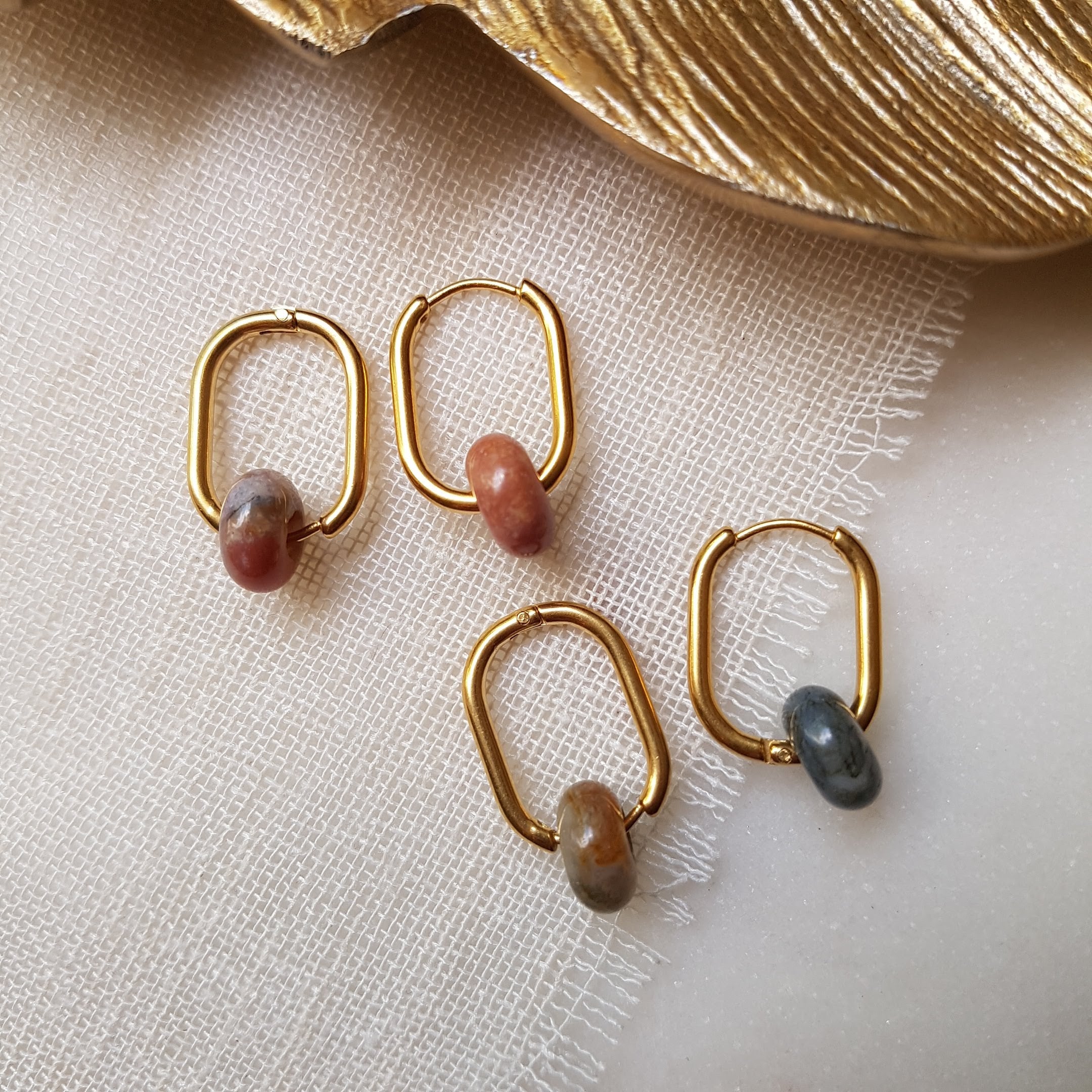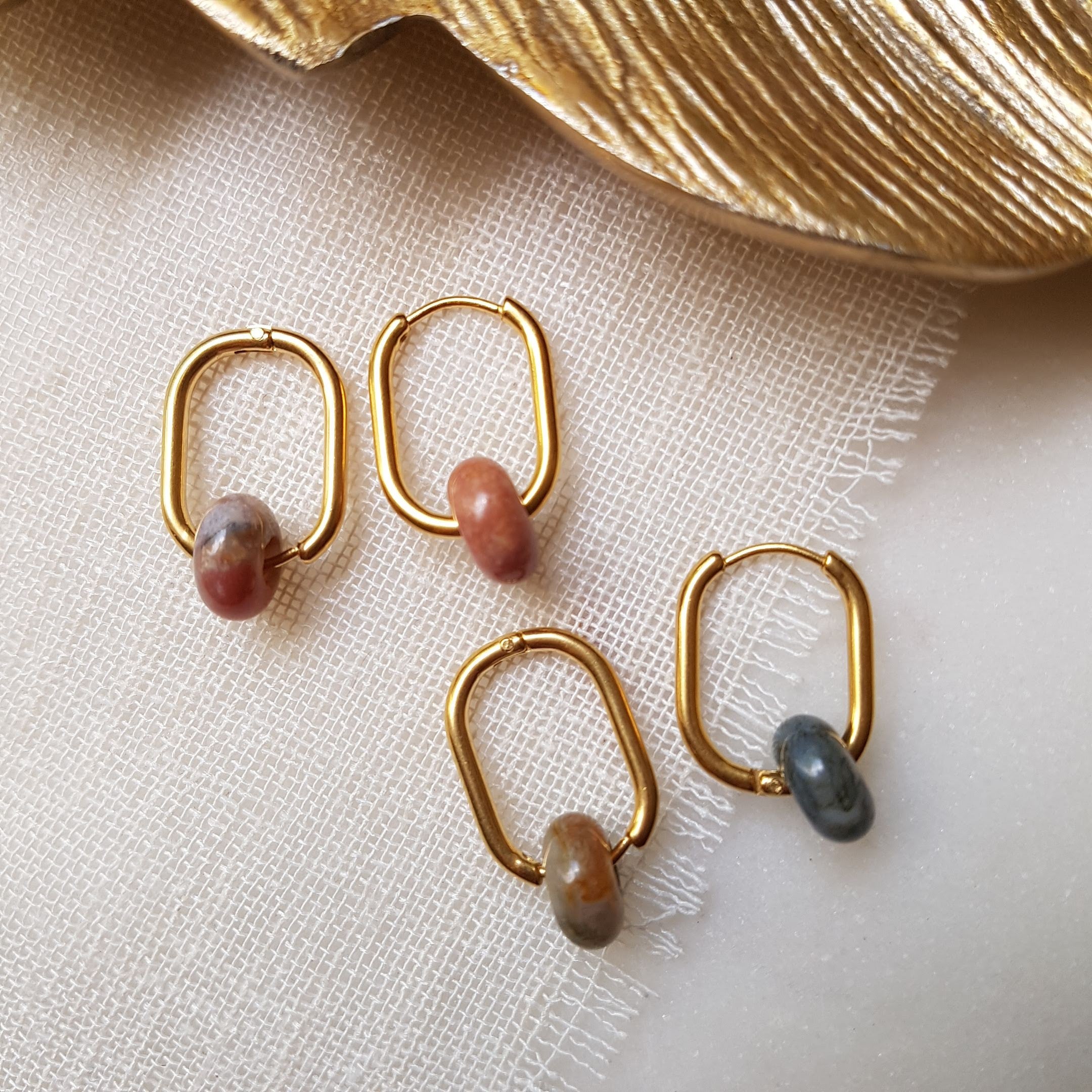 Creolen aus Edelstahl Maße: 20 x 15 mm, verziert mit einem Indischer Achat.