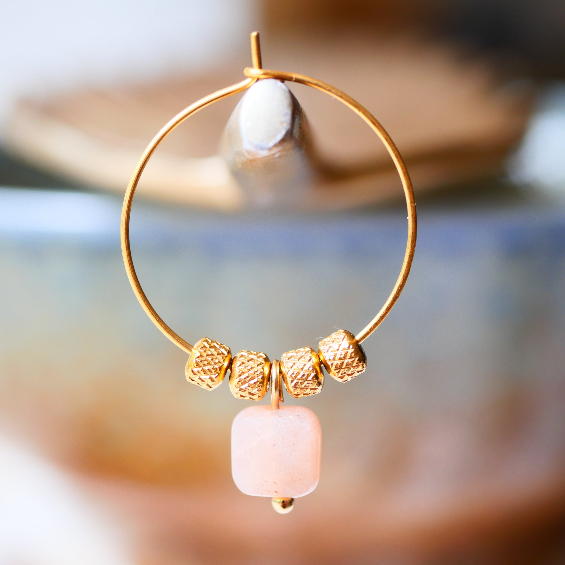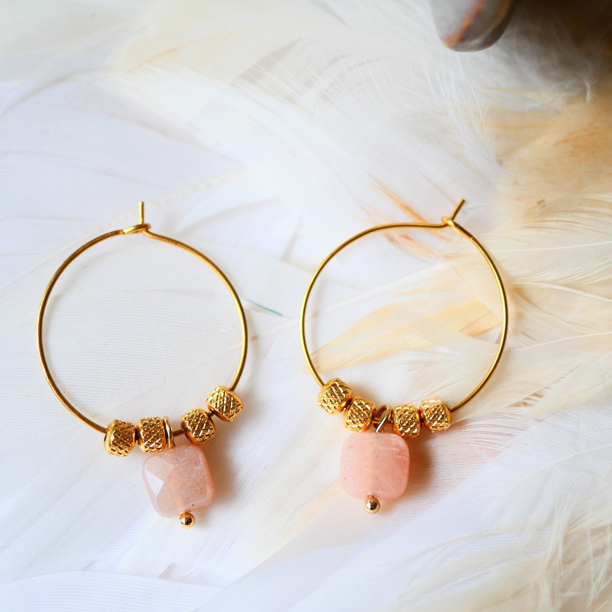 Ohrringe aus Edelstahl, verziert mit einem orangefarbenen Mondstein