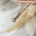 Edelstahlhalskette bestehend aus einem fein vergoldeten Anhänger mit Mondstein aus der Kollektion Parfaites Imparfaites. Der Stein hat schwarze Einschlüsse
