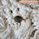 Bague Katha réglable de la taille 54 à 60 en laiton dorée 2 microns, composée d'une labradorite