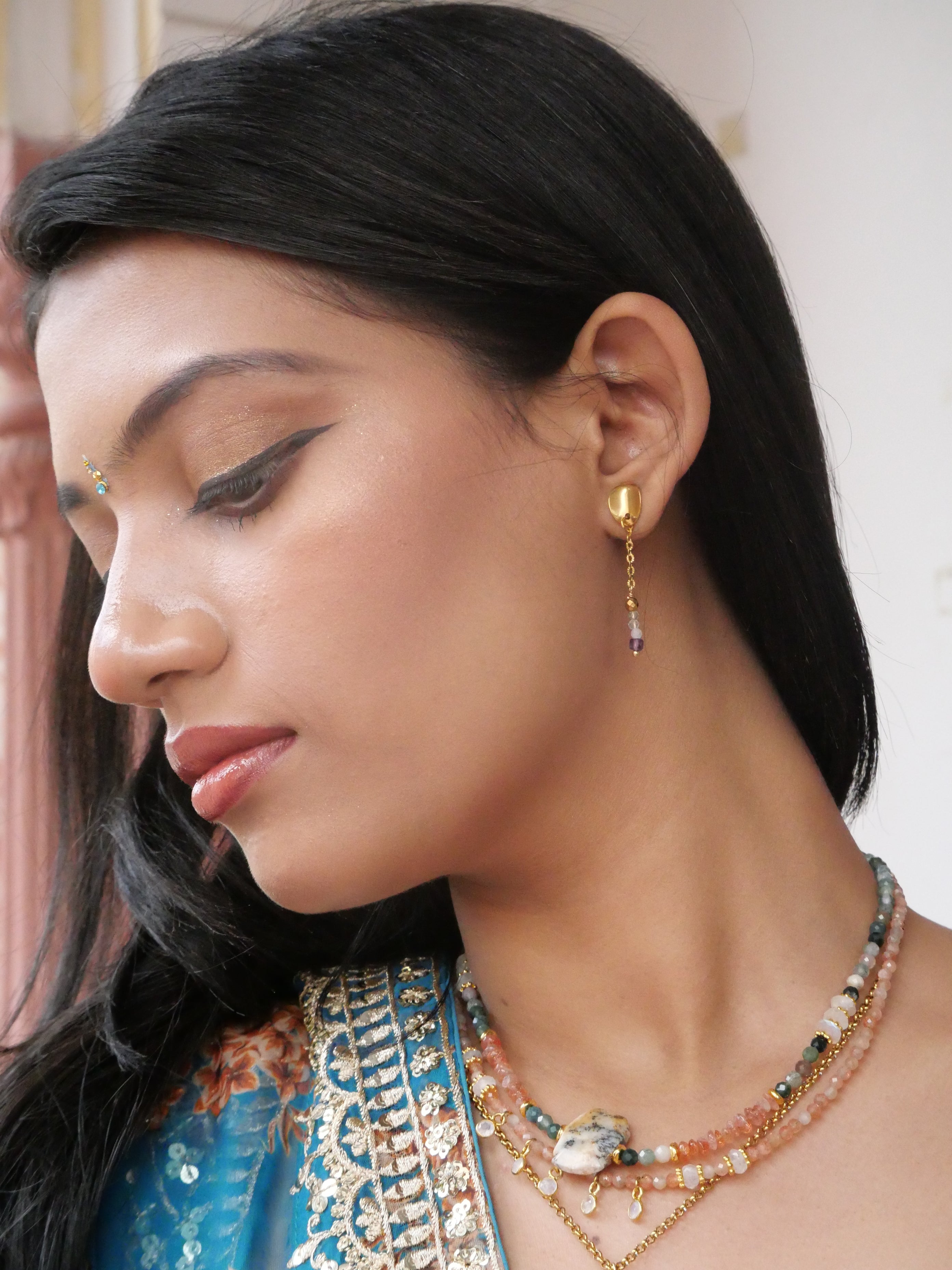 Nos bijoux sont conçus avec des pierres naturelles, offertes par la Terre Mère elle-même. Chaque pierre présente ainsi des variations uniques de couleurs, faisant de chacune d’elle une création singulière. Veuillez noter que les teintes des pierres peuvent légèrement différer de l'image. Nous croyons que ces variations confèrent à votre bijou un caractère unique et personnel, juste pour vous.