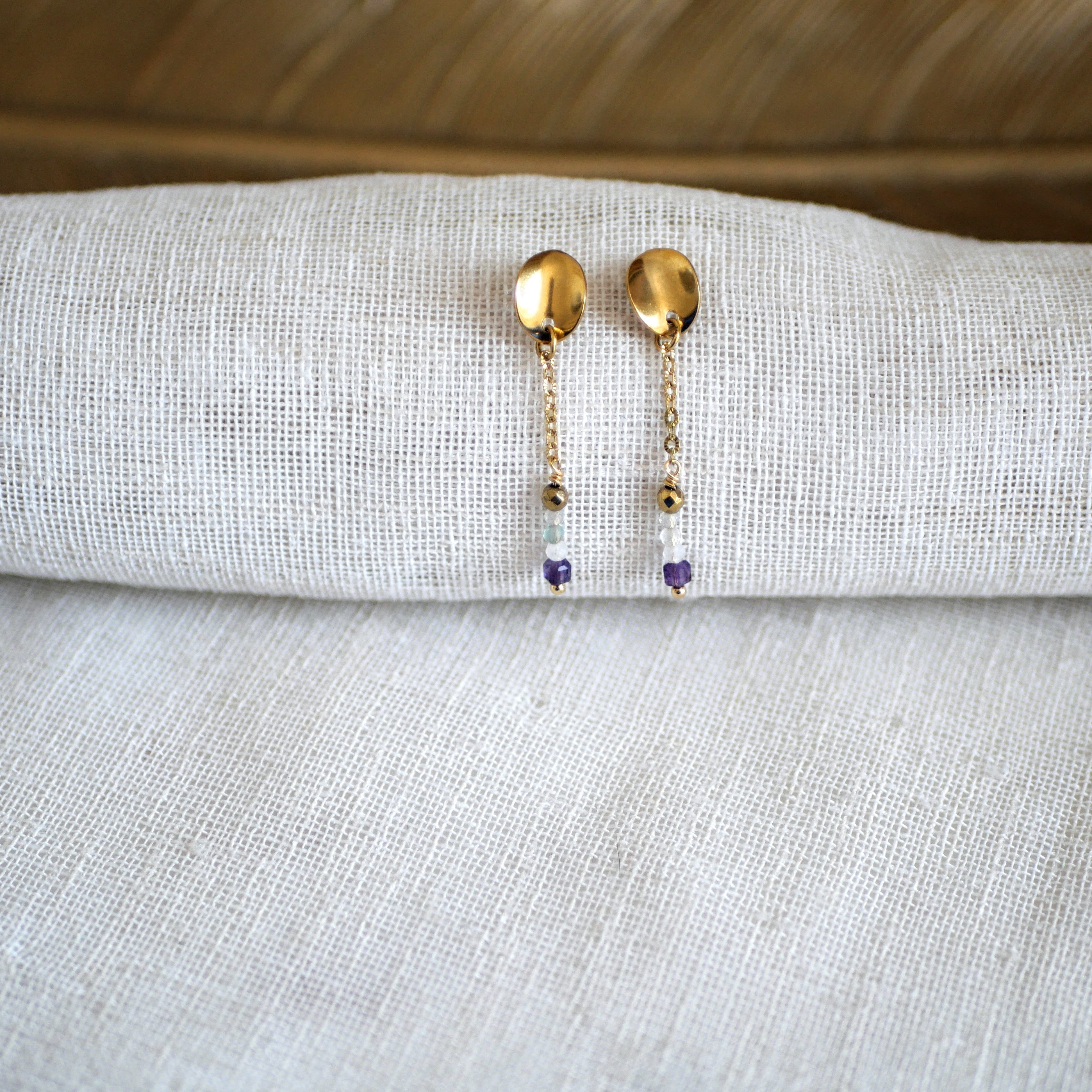 Boucles d'oreilles en acier inoxydable composés de fluorite et de pierres de lune