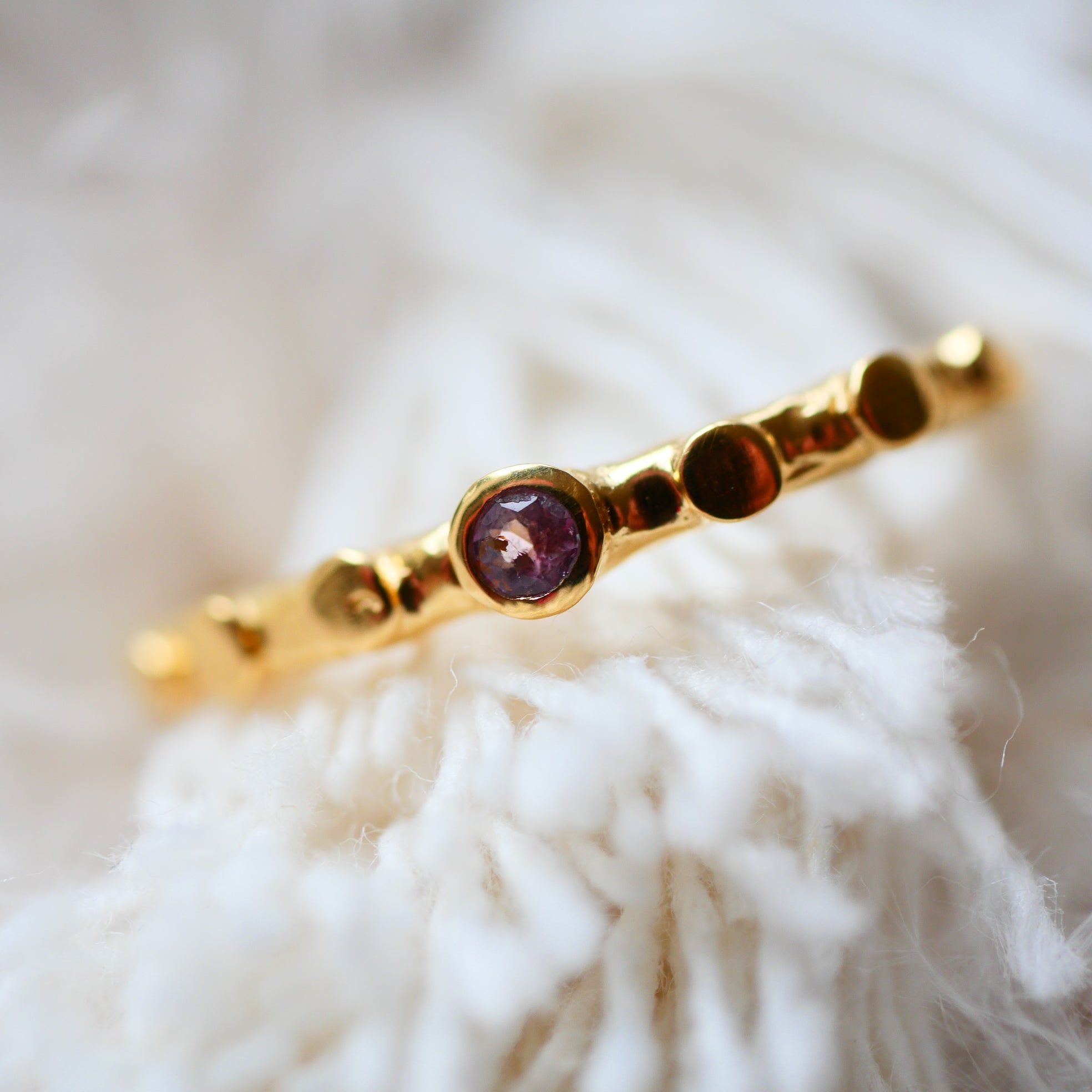 La bague AMBAR est ornée d'une tourmaline multicolore, une pierre qui apporte équilibre et joie. Chaque bague est unique grâce aux variations de couleurs de la pierre.