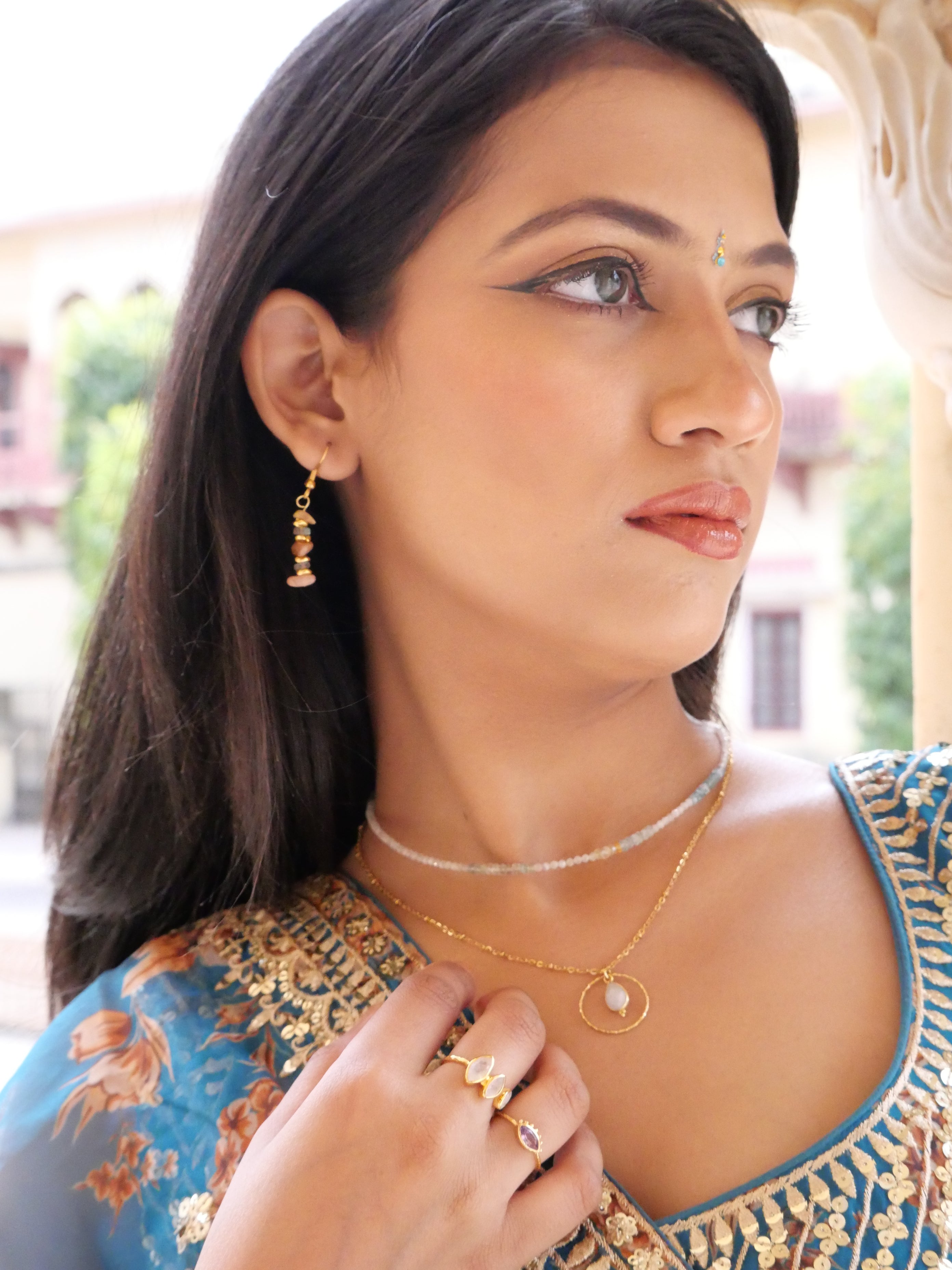 Nos bijoux sont conçus avec des pierres naturelles, offertes par la Terre Mère elle-même. Chaque pierre présente ainsi des variations uniques de couleurs, faisant de chacune d’elle une création singulière. Veuillez noter que les teintes des pierres peuvent légèrement différer de l'image. Nous croyons que ces variations confèrent à votre bijou un caractère unique et personnel, juste pour vous.