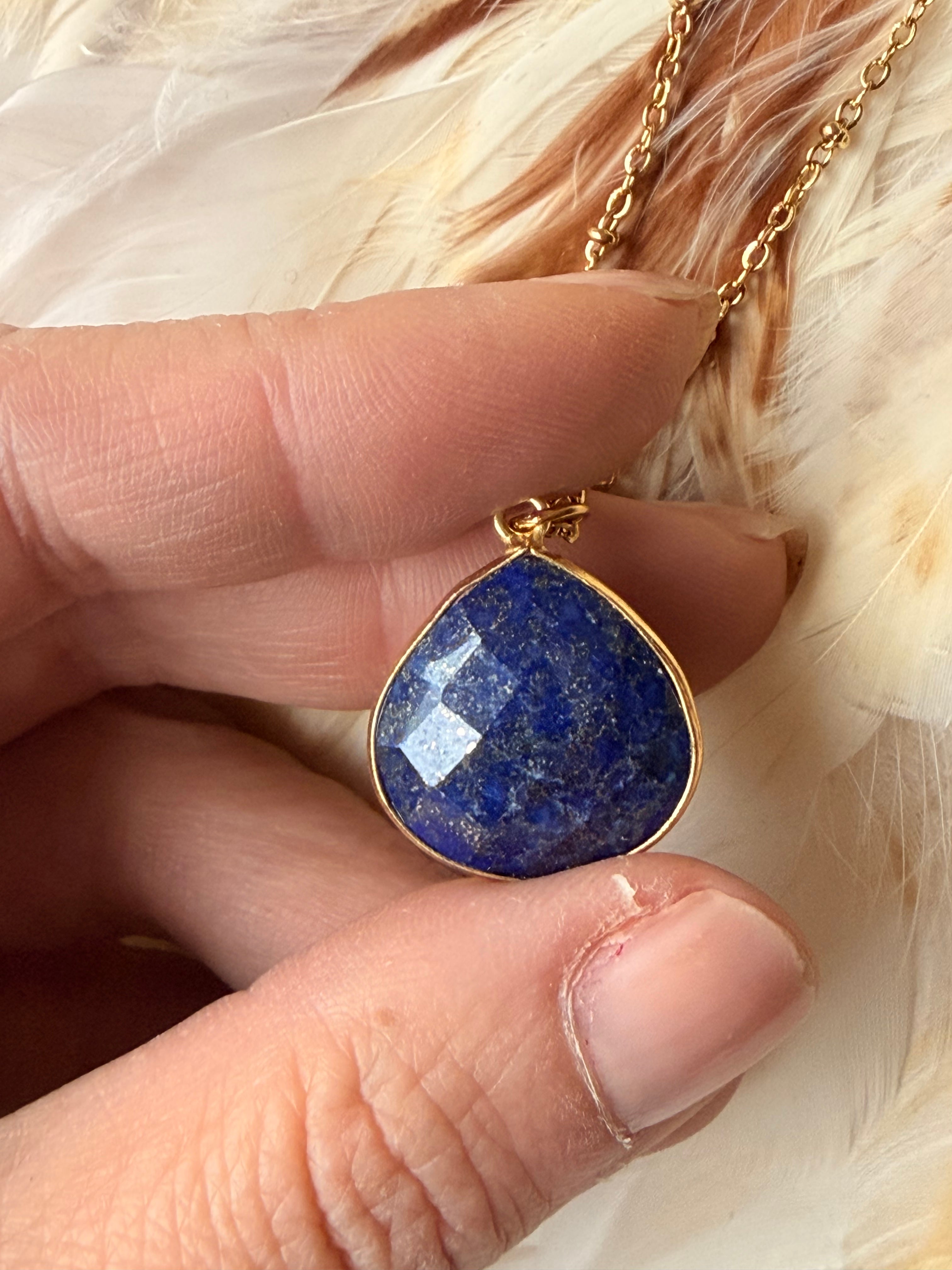 Pour nos 56 ans de mariage mon mari m'a offert une chaîne avec un beau pendentif pierre lapis lazuli ! Cette pierre correspond aux 56 ans de mariage ! La chaîne est belle et la pierre est magnifique ! Elle correspond exactement à la présentation sur votre site ! Je suis vraiment satisfaite ! Merci également pour votre petit message manuscrit !