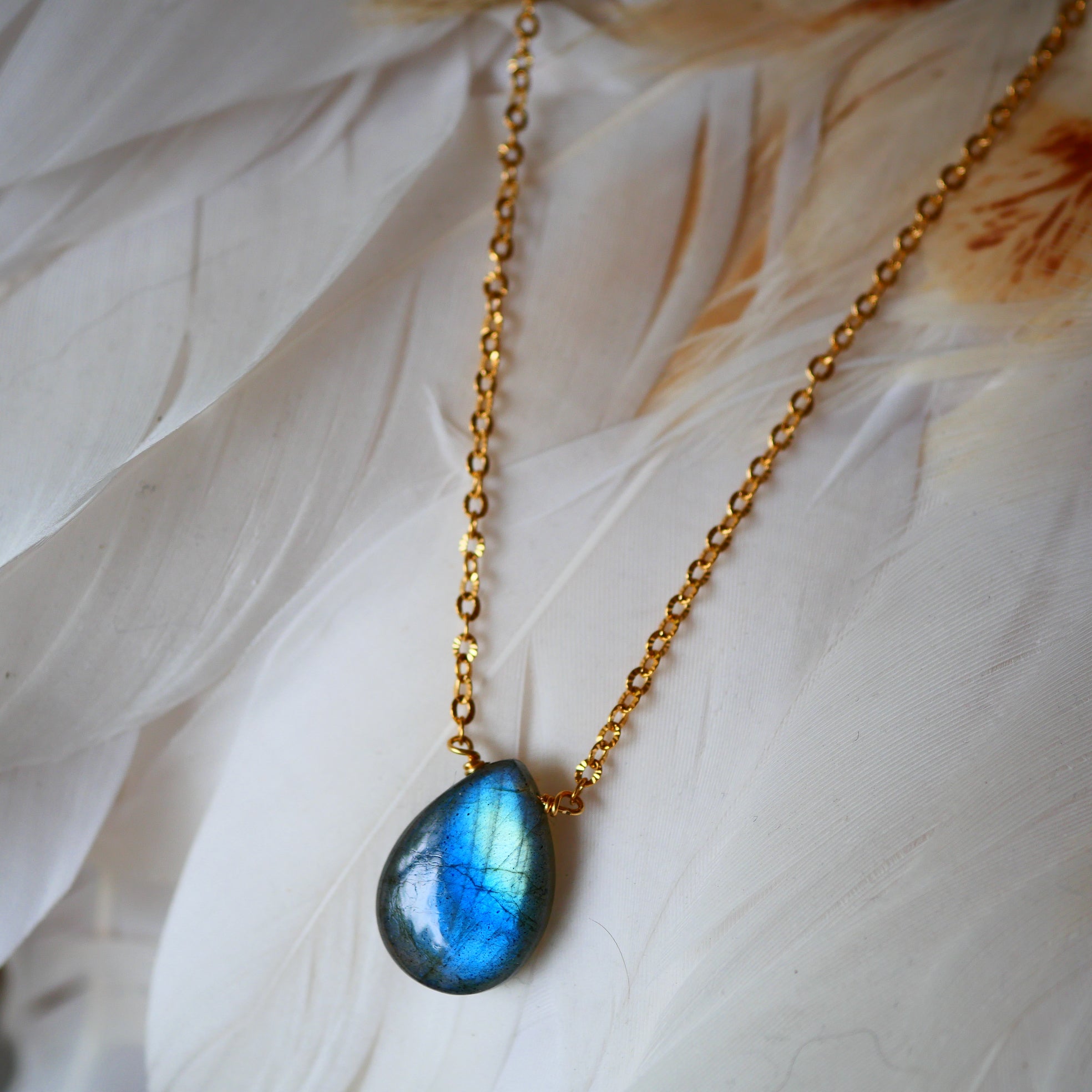 Collier Nora Éclat Céleste – Labradorite ou Pierre de Lune arc-en-ciel
